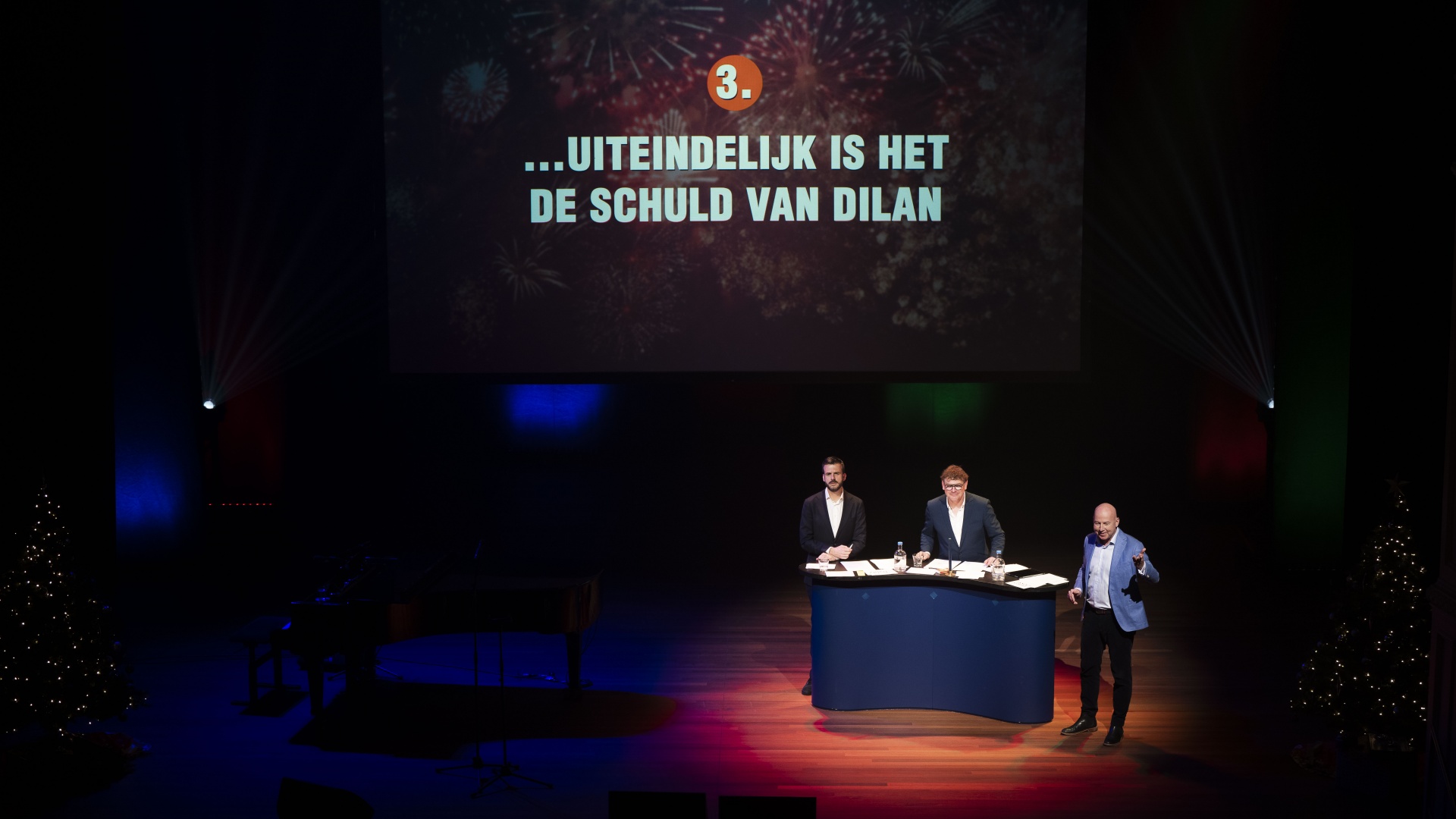 Ook dit jaar vatte cabaretier Kiki Schippers het jaar op geheel eigen wijze muzikaal samen en uiteraard ontbreekt de traditionele Politieke Quiz niet.
