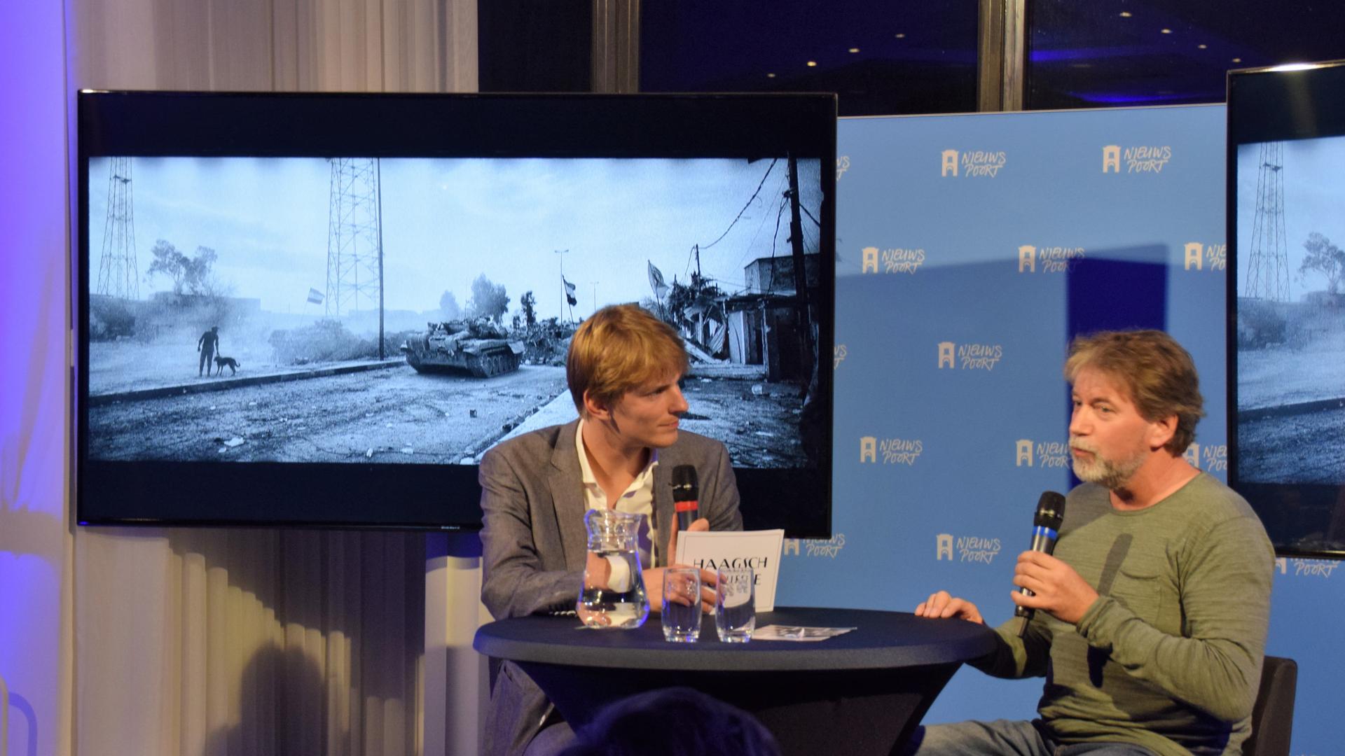 Nog geen 2 dagen terug uit Irak, vertelde Oorlogsfotograaf Eddy van Wessel (oa Irak, Afghanistan, Tsjetsenie en Syrie, 2x Zilveren Camera) over de dagelijkse praktijk en de gevaren die hij als fotograaf loopt, en blikte met het publiek terug op zijn meest indringende ervaringen.